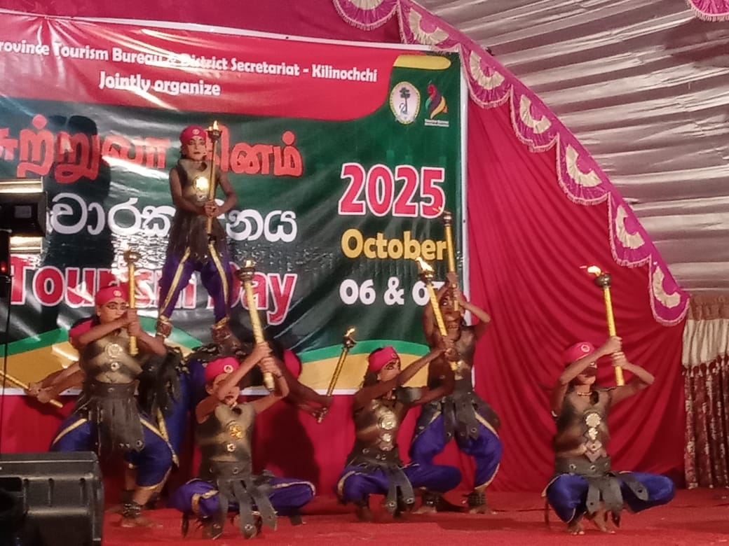 Following the welcome address delivered by Mrs. P. Jasothara, Director of the Northern Province Tourism Bureau, a series of cultural performances were staged. The programme was graced by several distinguished guests, including Mr. S. Muralitharan, District Secretary – Kilinochchi, as the Chief Guest; Hon. Mr. A. Velamalikithan, Chairman of the Karaichchi Pradeshiya Sabha, as the Guest of Honour; and Mrs. N. Inparaj, Additional District Secretary, Mr. S. Mohanabavan, Director of Planning, Mr. T. Muhunthan, Divisional Secretary – Karaichchi, and Mr. V. Aayakulan, Divisional Secretary – Poonakary, as special guests.